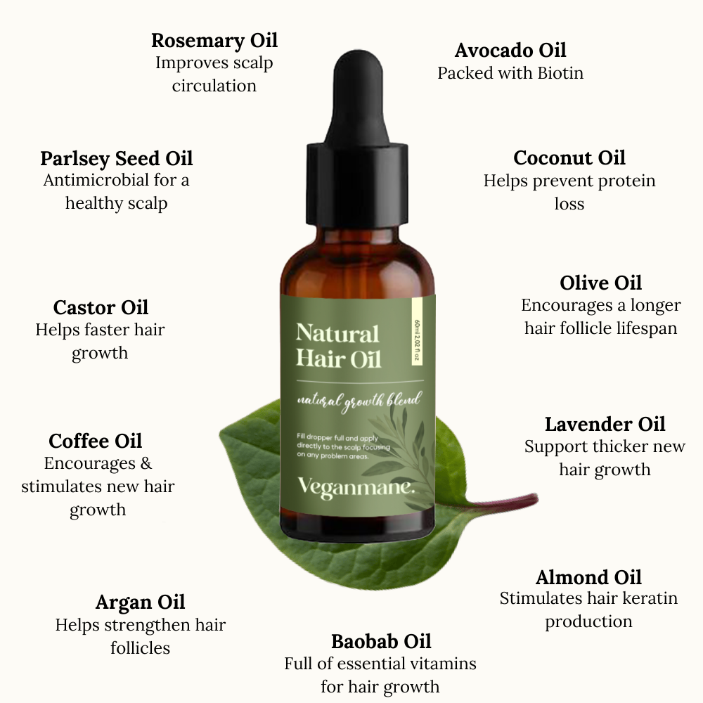 Our plant powered blend is packed with carefully sourced, potent natural oils that work in tandem to target hair growth holistically.
